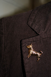 Den lilla Lancashire heeler-broschen får som oftast vara med på utställning och stannar lite slarvigt kvar på senast använda kavaj. Då vet jag var jag har den. Sätter faktiskt tillbaka den på kavajen även om kavajen har tvättats. Lite som minne tror jag och uppskattning av kavajen kanske. Lite knasigt när jag nu tänker på det men så är det.